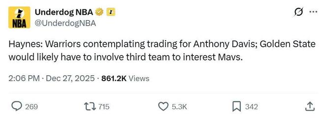 根据名记Chris Haynes报道,勇士队正在考虑引进浓眉哥这个高风险、高回报的补强目标。
