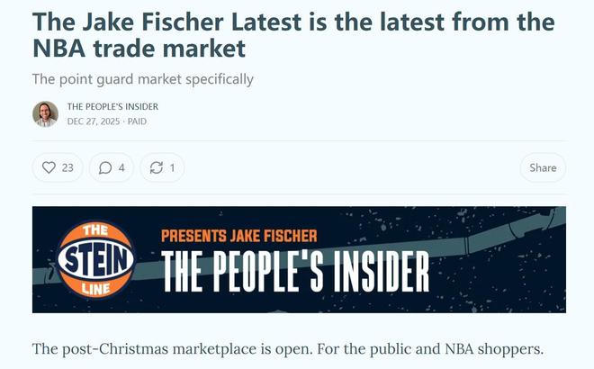 《Stein Substack》也给出相同说法,并且进一步确认数支球队都在等待快船队战绩进一步恶化后将哈登摆上货架。